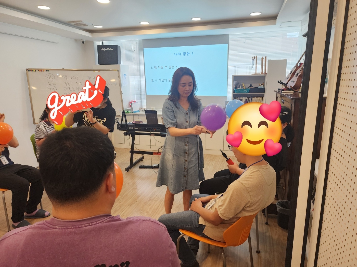 숙대 음악치료대학원 2025년 전기 입학 설명회 및 음악치료 특강 안내 나의 꿈을 날려 보아요~~^^ 청춘 실버 음악치료 성인 미술 취미반 수업 집단 미술치료 프로그램이 종결되었습니다.^^ 장애인 음악치료그룹수업 한글날 맞이 ~~~ 7월4일 대구 지적 발달장애인의 날 기념 한마당 점토 작업 중~~^^ 또래상담 동아리 음악치료 특강!! 음악치료 대상자 정oo님 수상을 축하드립니다.^^ 봄나무 꾸미기 신나는 사물놀이 재미있는 물감놀이^^ 감정카드 그라시아 음악 연주회 다문화가정 치료세션 발달 장애 대상자 입니다. 동적 가족화 고령 들꽃 마을 미술 전시회